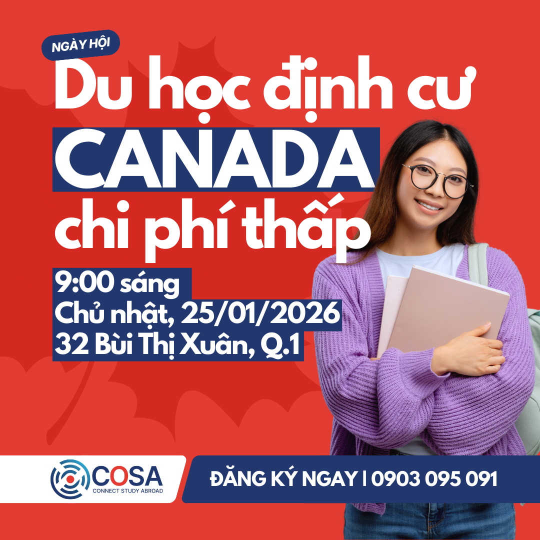 🎉 Sự kiện lớn nhất đầu năm 2026 dành cho học sinh – sinh viên và phụ huynh quan tâm du học Canada, do Du học Định cư COSA tổ chức.